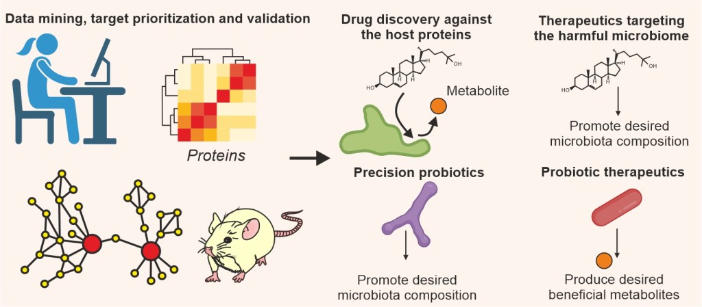We are aiming to develop novel modalities including small molecule drugs targeting host proteins as well as antibiotics and precision probiotics targeting microbiota. Target prioritization through crunching data is thus essential. We combine in-house data with those from patients and model systems to identify druggable targets based on our robust target ranking strategies (Redox Biology 2020, Advanced Science 2024). The lab is adept in employing sophisticated algorithms such as orthogonal partial least square modeling for target identification (Nature Communications 2019 and 2021, Biosensors and Bioelectronics 2023).