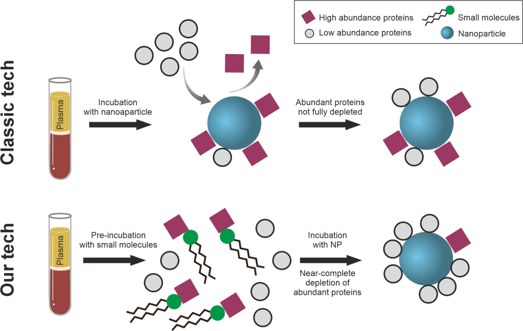 We have been working toward standardization of LC-MS methodology, data extraction and processing to enable biomarker discovery (Nature Communications 2022 and 2024a). We are also interested in multi-omics studies for discovering new biomarkers (Biosensors and Bioelectronics 2023). A current project is focused on significantly enhancing the plasma proteome coverage leveraging the interaction of metabolites such as phosphatidylcholine with plasma proteins in the presence of nanoparticles (Nature Communications 2024b). This approach can quantify up to 4500 proteins in plasma, devoid of contamination by extracellular vesicle proteins.